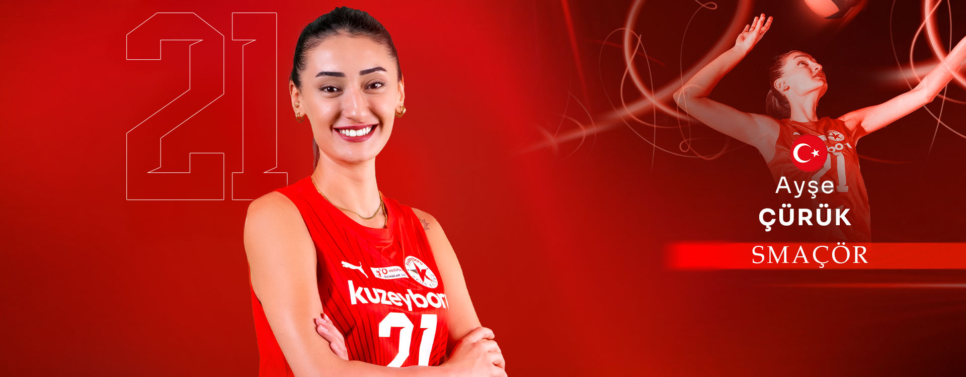 4 Ekim 2001 doğumlu Ayşe Çürük, cesur hücumlarıyla öne çıkan bir pasör çaprazı. 182 cm boyundaki genç oyuncu, 2025’te A Milli Takım’a seçilerek VNL sahnesinde yer aldı. Bitmeyen enerjisi ve rakibe karşı aldığı inisiyatifle dikkat çeken Ayşe, Kuzeyboru’nun en dinamik isimlerinden biri.